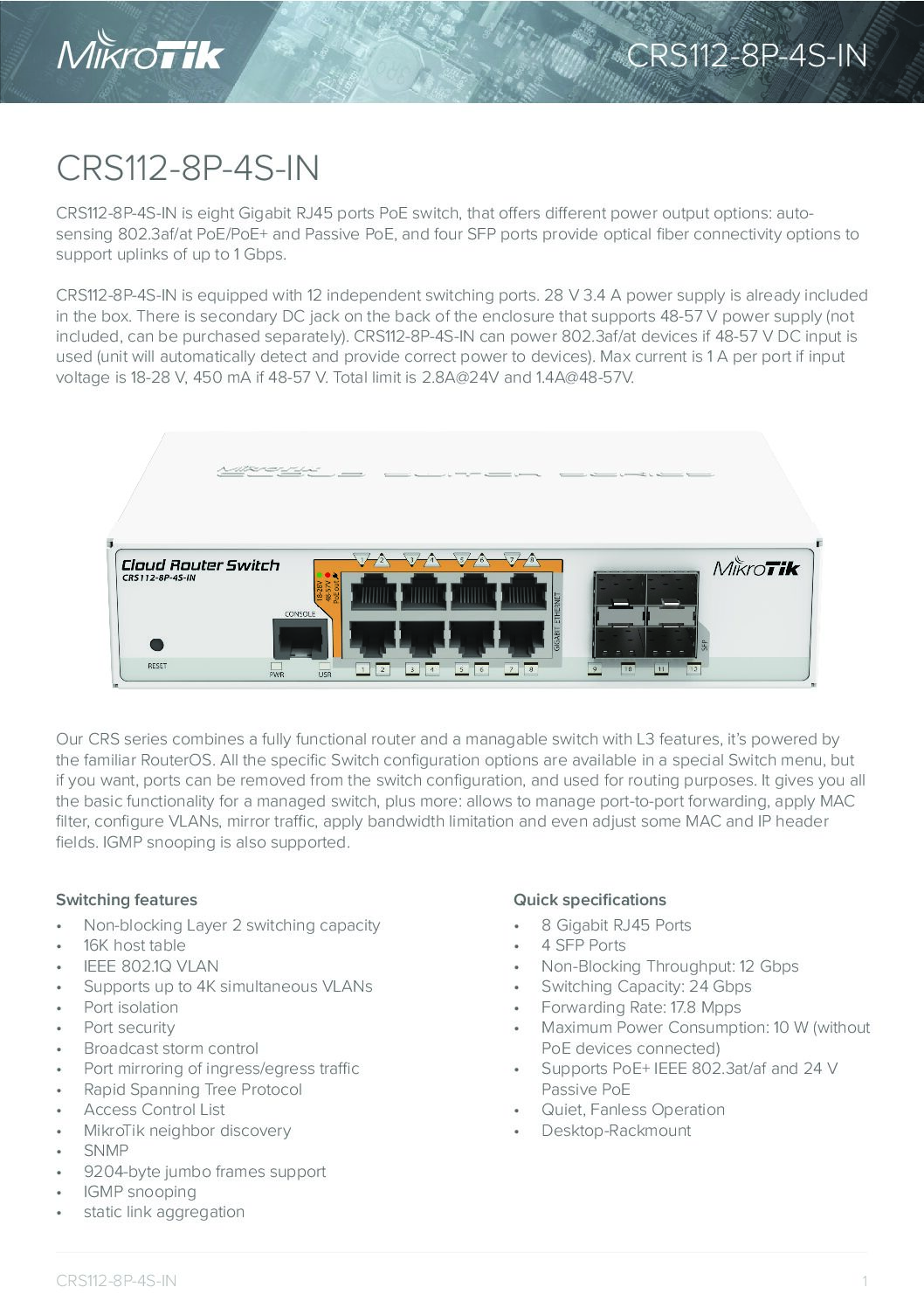 Đặc điểm nổi bật của Switch Mikrotik CRS112-8P-4S-IN