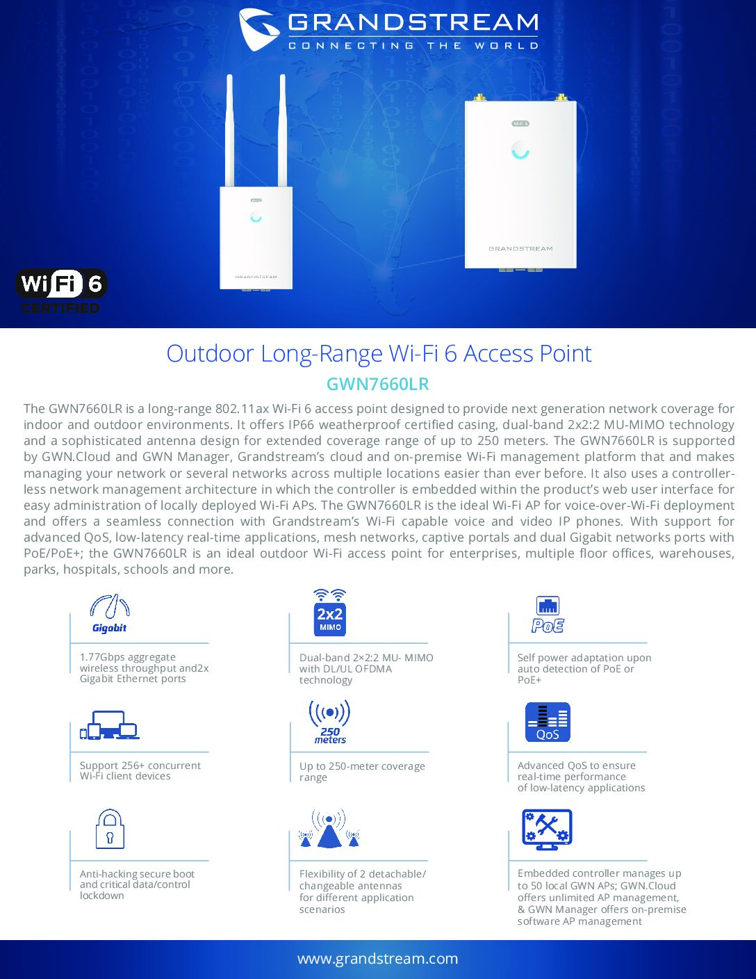 Bộ phát wifi Grandstream GWN7660LR Wifi 6 2×2:2 MU-MIMO hỗ trợ 256 user