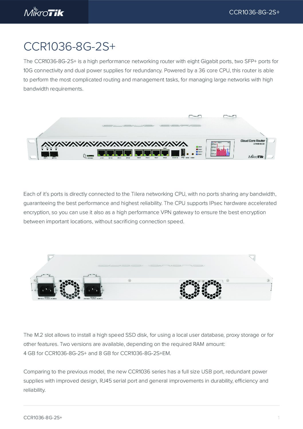 MikroTik CCR1036-8G-2S+EM, Thiết bị cân bằng tải Router chịu tải 5000 user