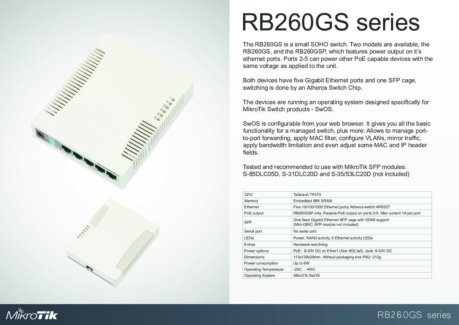 | Operating System | MikroTik SwOS |